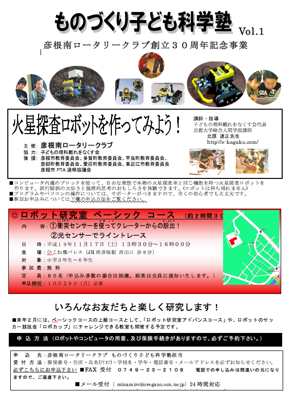 「ものづくり子ども科学塾第1回〜3回開講」 |