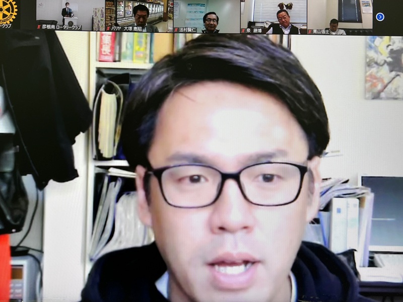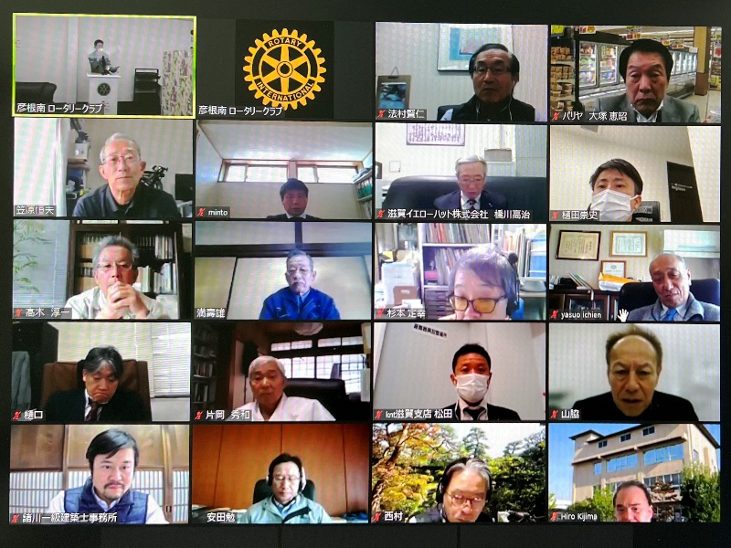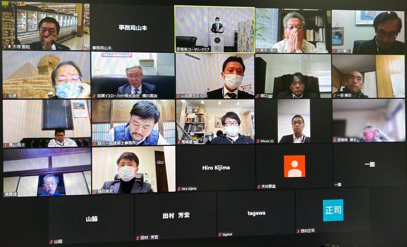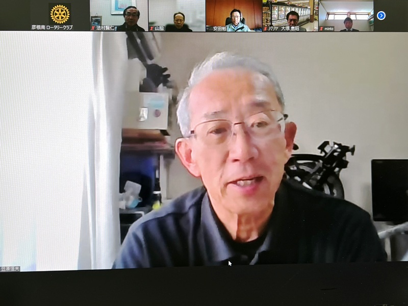 【彦根学童野球連盟助成金贈呈式・彦根RCより表敬訪問・委員長挨拶】 彦根学童野球連盟:理事長 松本氏・副理事長 松宮氏 彦根RC:青木竺峰君・上田勝之君 事務局:Zoom |