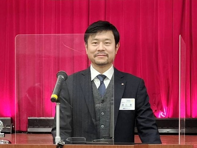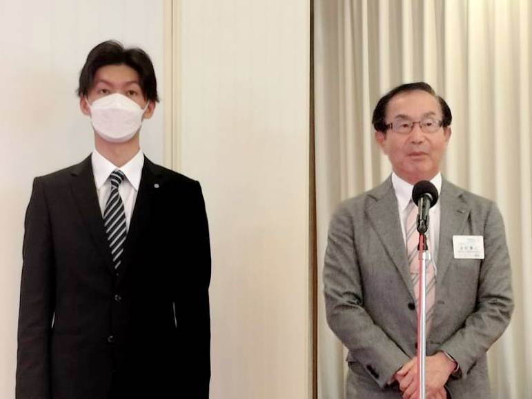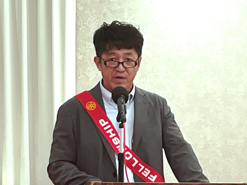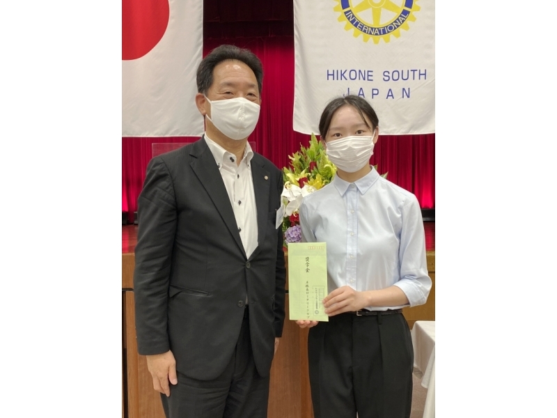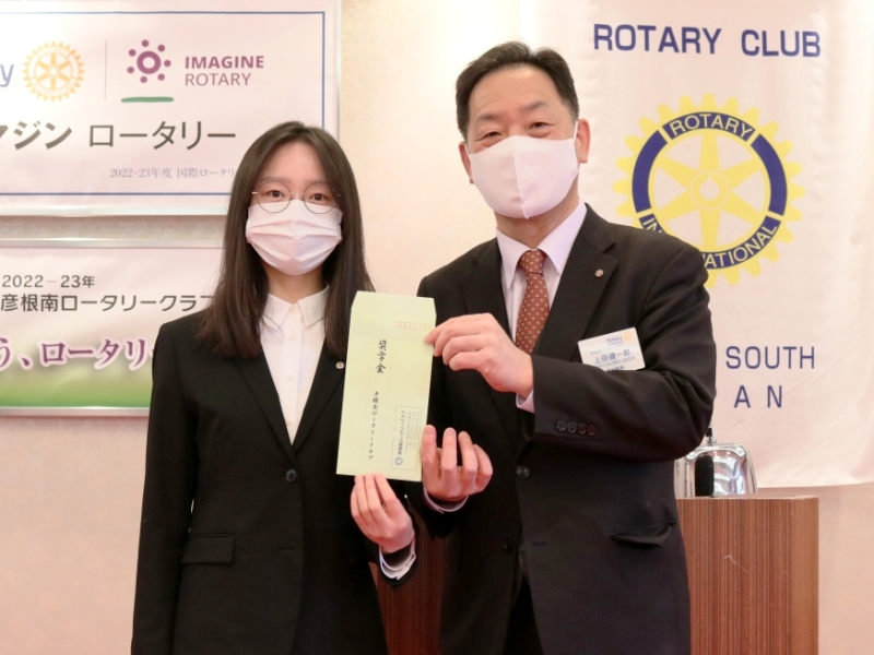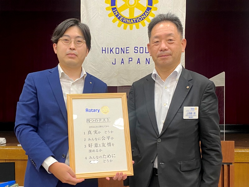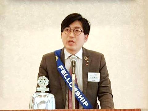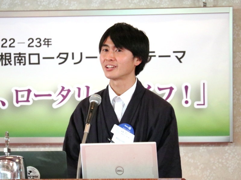【新会員スピーチ】 小市篤志君 米山奨学生:アン・シュエン君 場所:多賀大社参集殿 |