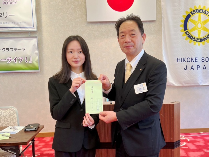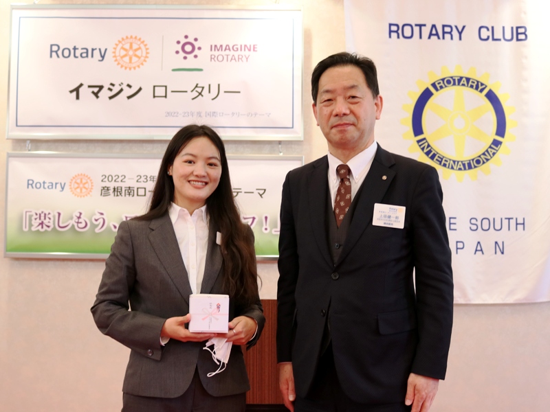 【米山奨学生スピーチ】 米山奨学生 陳 舞雪さん 場所:多賀大社参集殿 |
