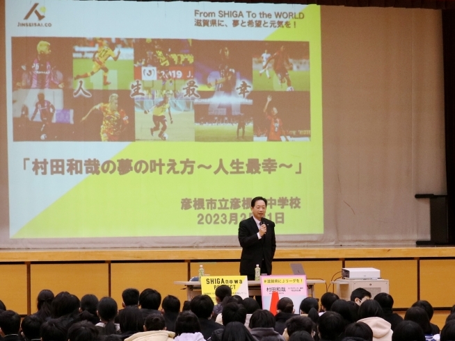 【45周年記念事業「第5回 夢授業」】 村田和哉氏 (株)人生最幸 代表取締役 場所:彦根市立彦根中学校 |