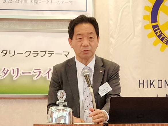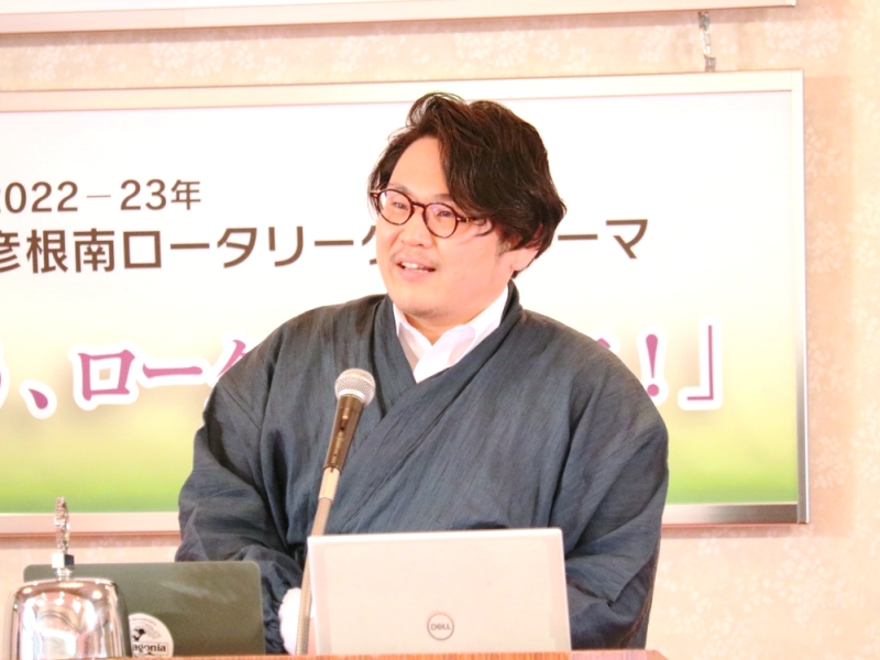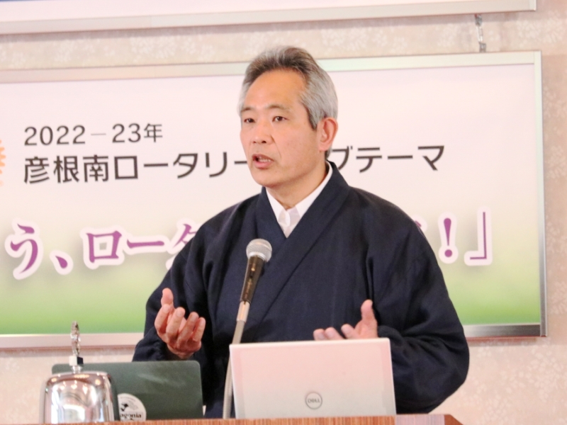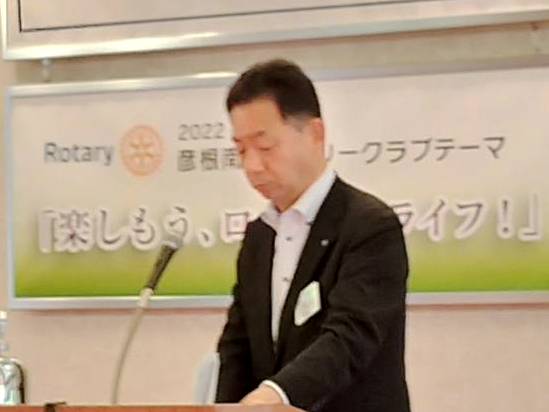 【彦根RC・彦根南RC合同公式訪問】 尾賀康裕氏 国際ロータリー第2650地区ガバナー 場所:マリアージュ彦根 |
