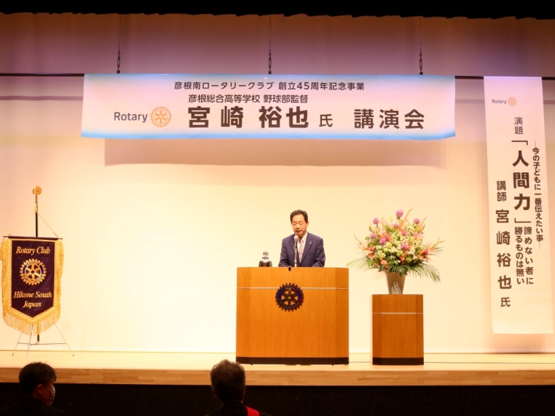 【45周年記念事業拡大例会「人間力 −今の子どもに一番伝えたい事− 諦めない者に勝るものは無い」】 宮崎裕也氏 彦根総合高等学校 野球部監督 場所:プロシードアリーナHIKONE |