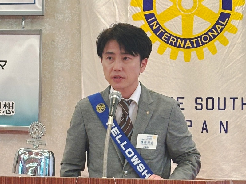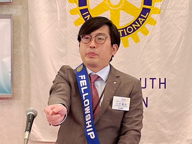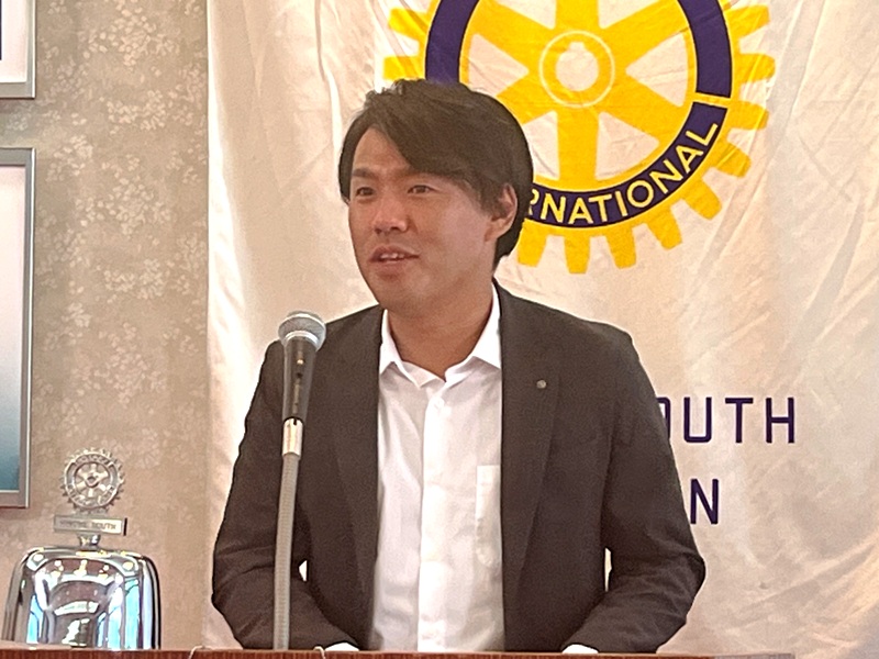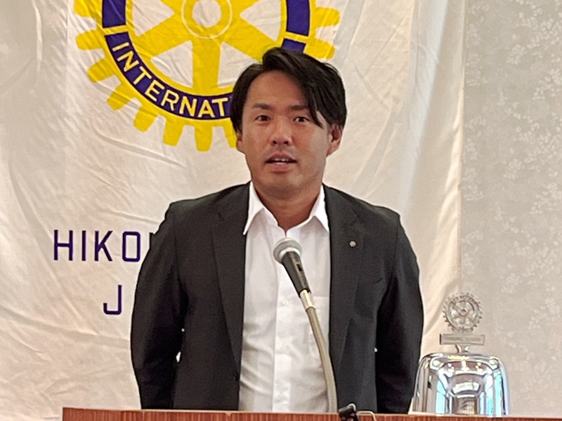 【新会員スピーチ】 西村健太郎君 場所:多賀大社参集殿 |