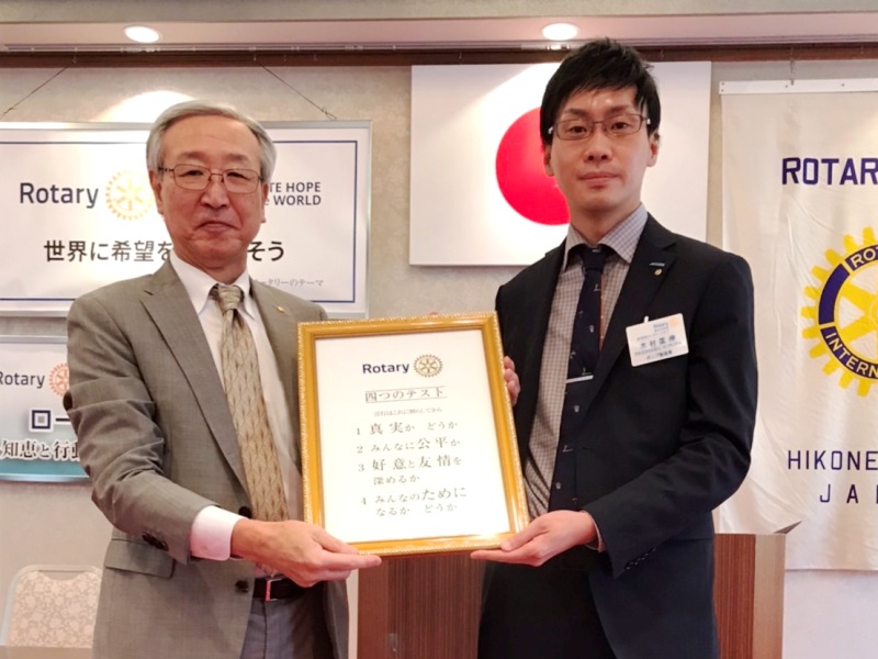 【地区IA委員長スピーチ/新会員スピーチ】 宇野晃成氏/伊藤岳夫君 場所:多賀大社参集殿 |