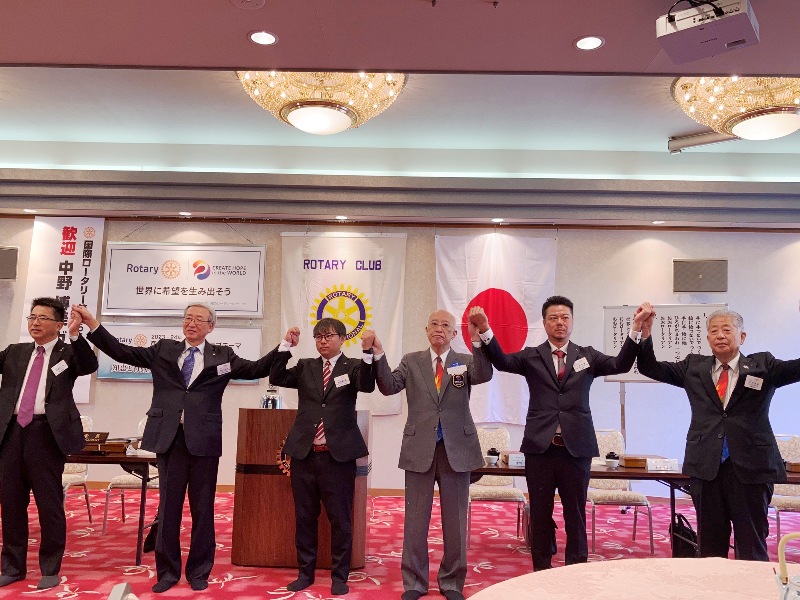 【ガバナーアドレス(公式訪問例会)】 中野博美氏 国際ロータリー第2650地区ガバナー 木村泰造君 ガバナー補佐 小川勝章氏 公式訪問担当副理事 場所:多賀大社参集殿 |