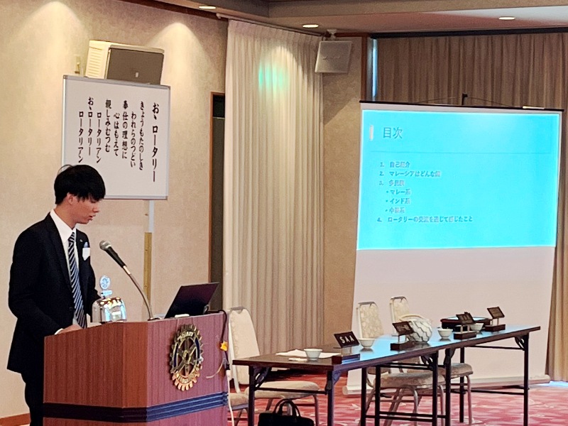 【米山奨学生スピーチ】 アン・シュエン君 場所:多賀大社参集殿 |
